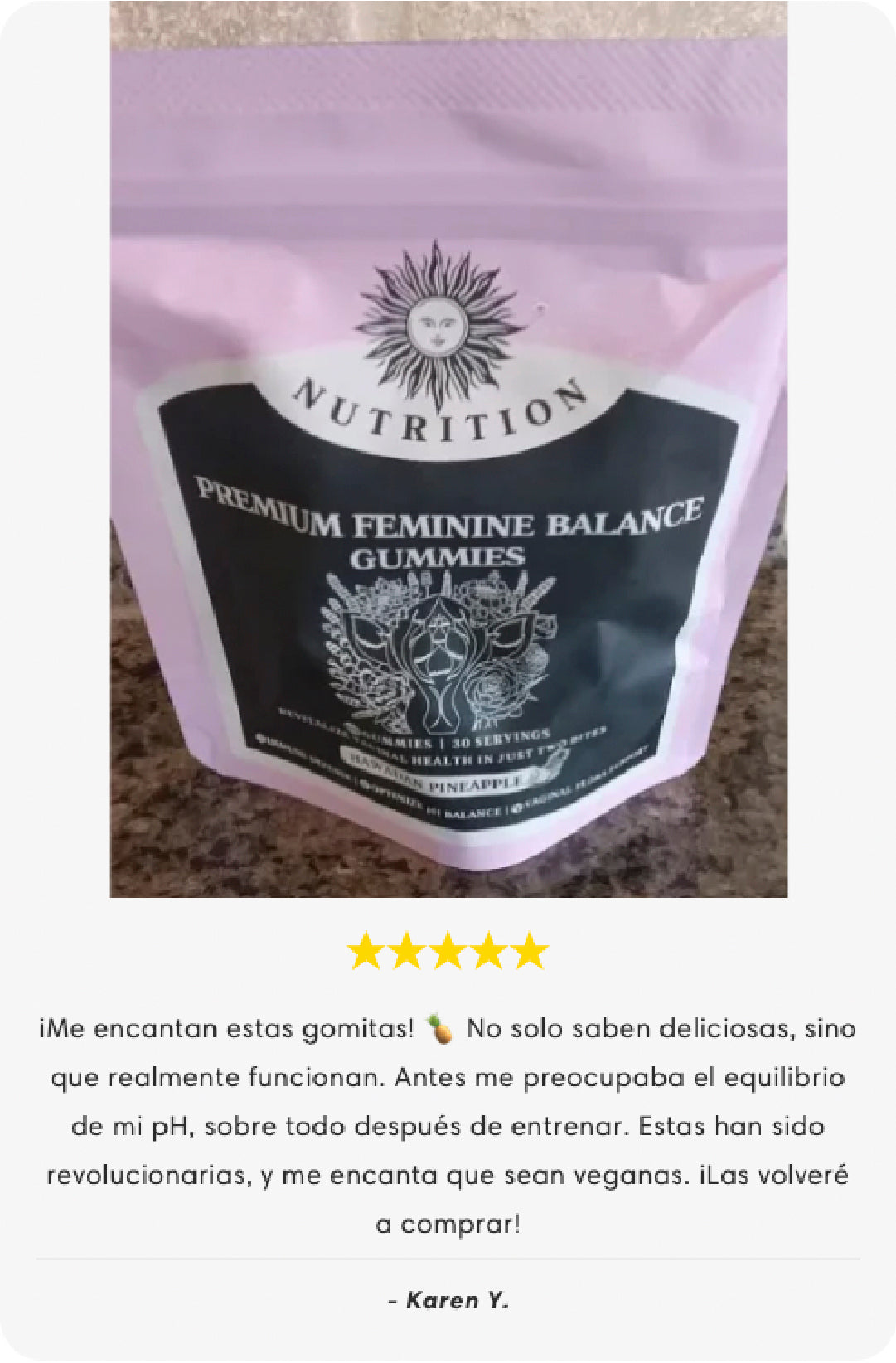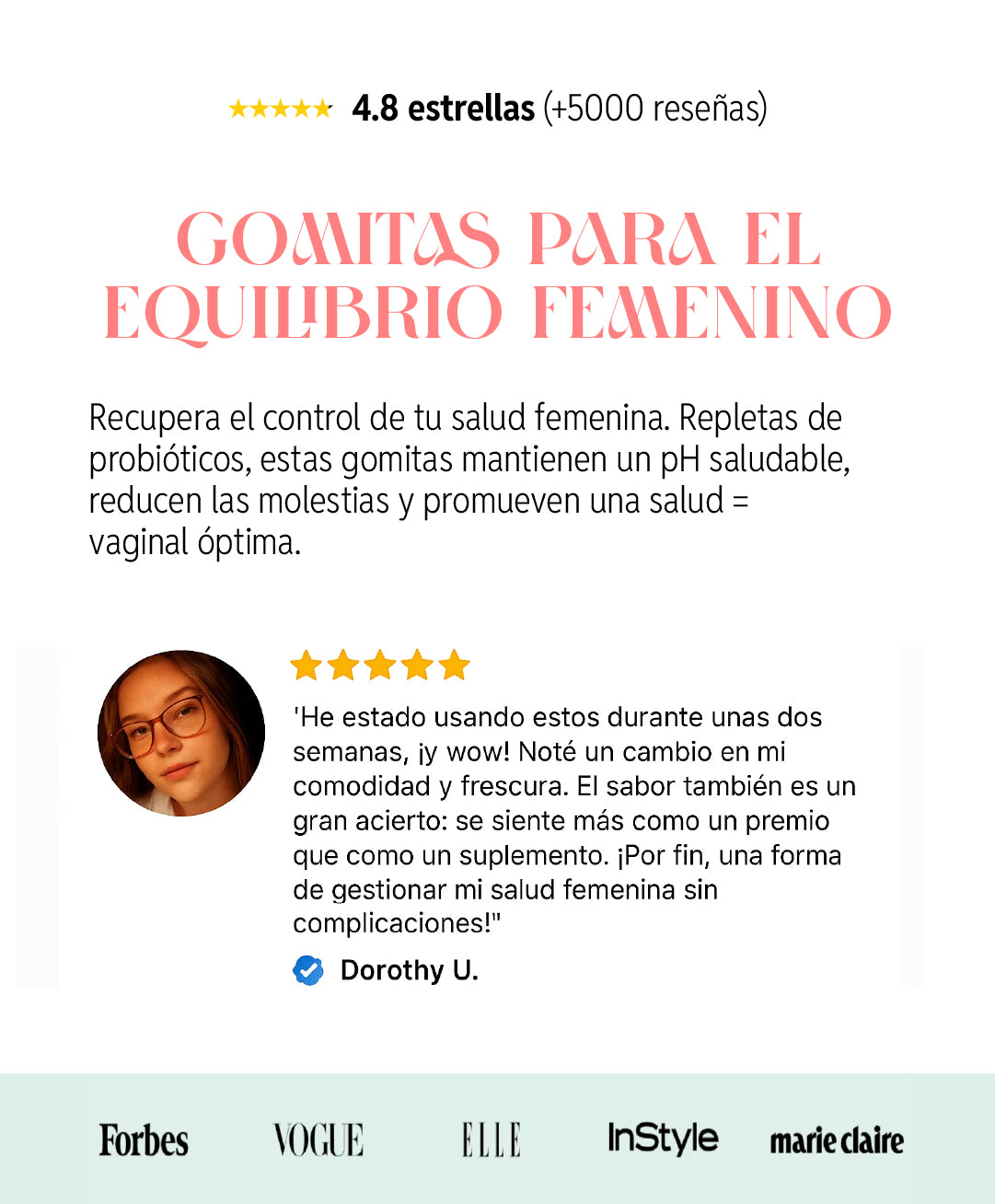 Estas gomitas ayudan a restaurar y mantener el equilibrio del pH vaginal, promueven un aroma más fresco y agradable y pueden favorecer la salud vaginal general al reducir las molestias causadas por los desequilibrios.