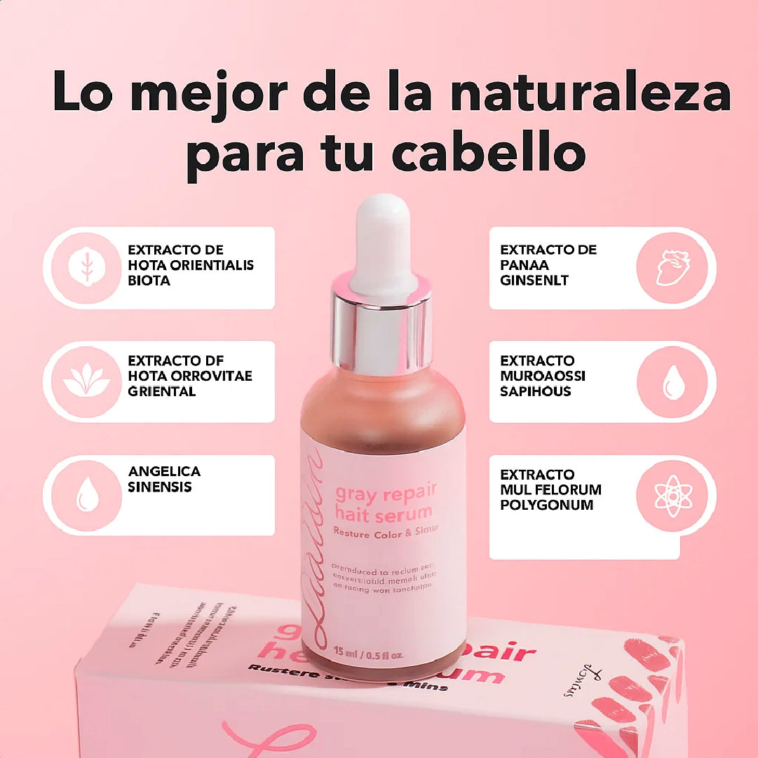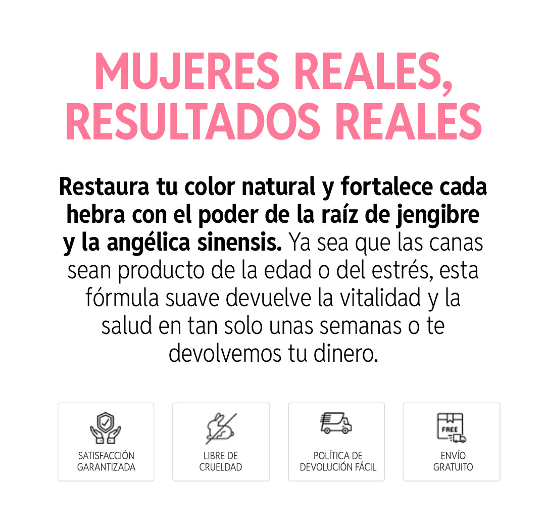 Utiliza extractos naturales como raíz de jengibre y Angelica Sinensis para devolver el color natural, fortalecer el cabello y mantenerlo saludable.